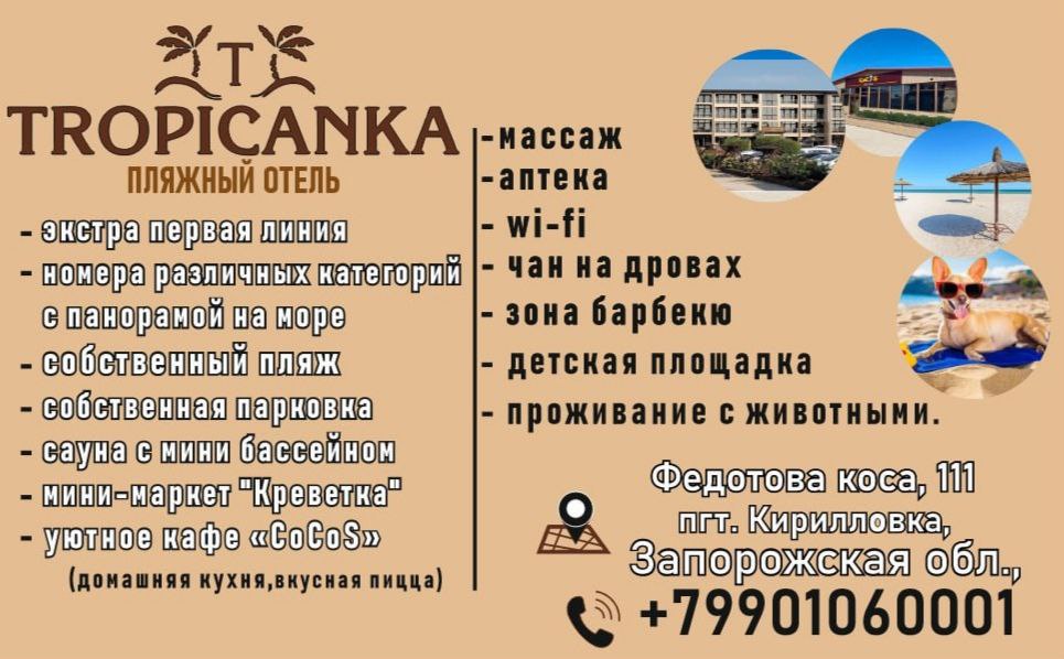 ОТПУСК И ВЫХОДНЫЕ НА МОРЕ В ПЛЯЖНОМ ОТЕЛЕ "ТРОПИКАНКА" В КИРИЛЛОВКЕ