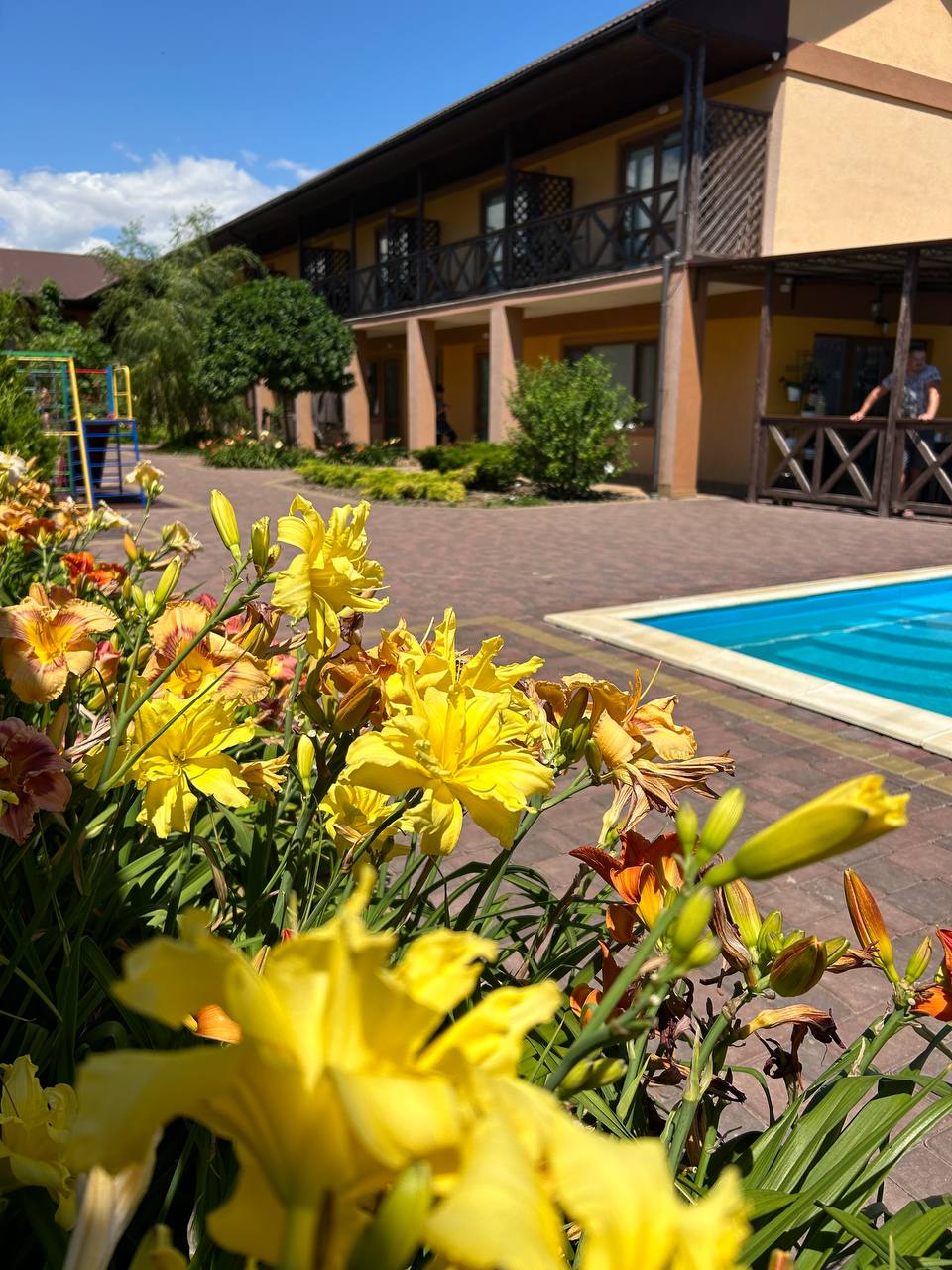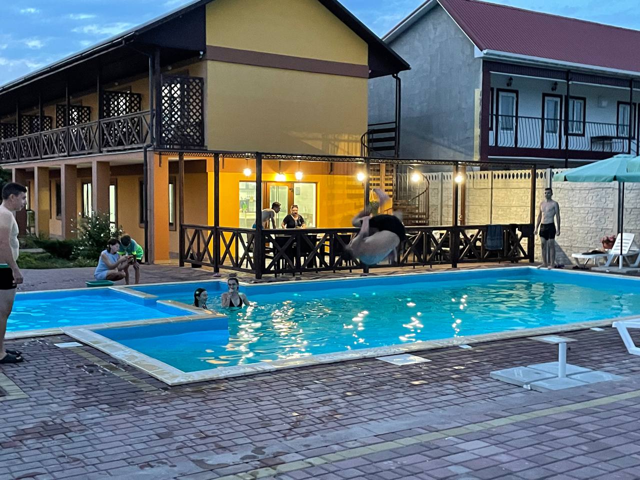 На территории - собственный бассейн и кафе, зона для приготовления ароматных шашлыков и летняя площадка для прекрасных вечеров на побережье!